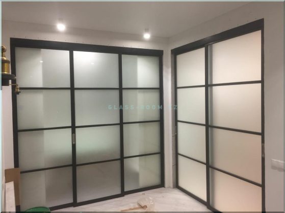 При заказе сдвижных стеклянных перегородок необходимо учитывать размеры отверстий для их установки. Также необходимо определиться с типом монтажа — направляющие могут быть креплены к потолку или стене.